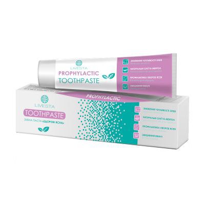 Зубна паста LIVESTA захищає ротову порожнину від захворювань пародонту, ефективно зміцнює зубну емаль. Регулярне застосування пасти знижує чутливість зубів і кровоточивість ясен.