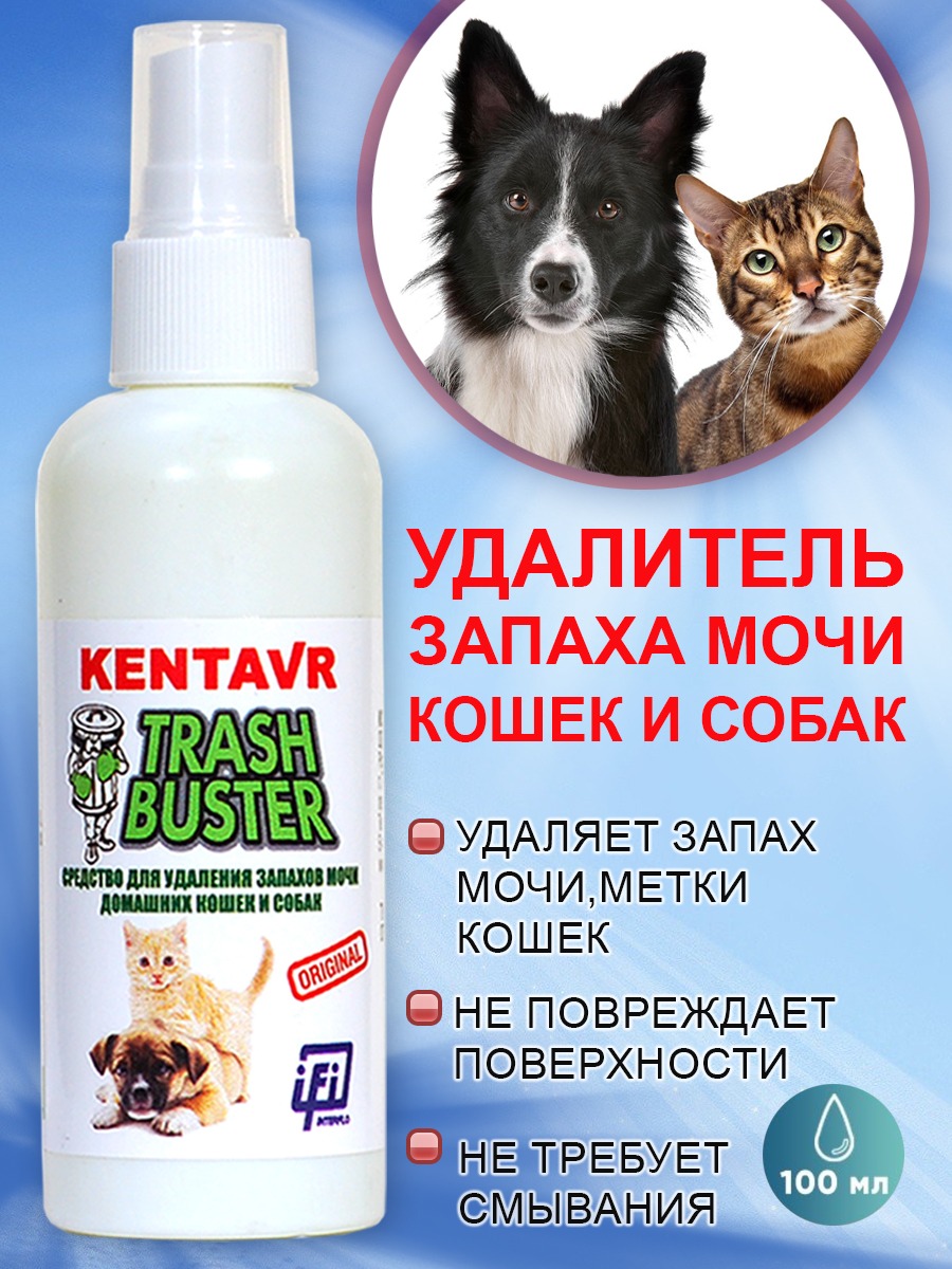 KENTAVR BUSTER - Нейтрализатор запаха животных (кошек, собак, кроликов). Без Хлора! Trash Buster не маскирует запах, как другие средства, а разлагает саму молекулярную составляющую запах. Средство содержит дезинфицирующие компоненты. Можно обрабатывать ковровые и текстильные покрытия. Безопасно для животных. Ликвидатор запаха мочи и меток. Расщепляет биологические ферменты животных, такие как: • Моча • Слюна • Метки • Другие биологические отложения животных. Антигадин для кошек и собак. 100мл