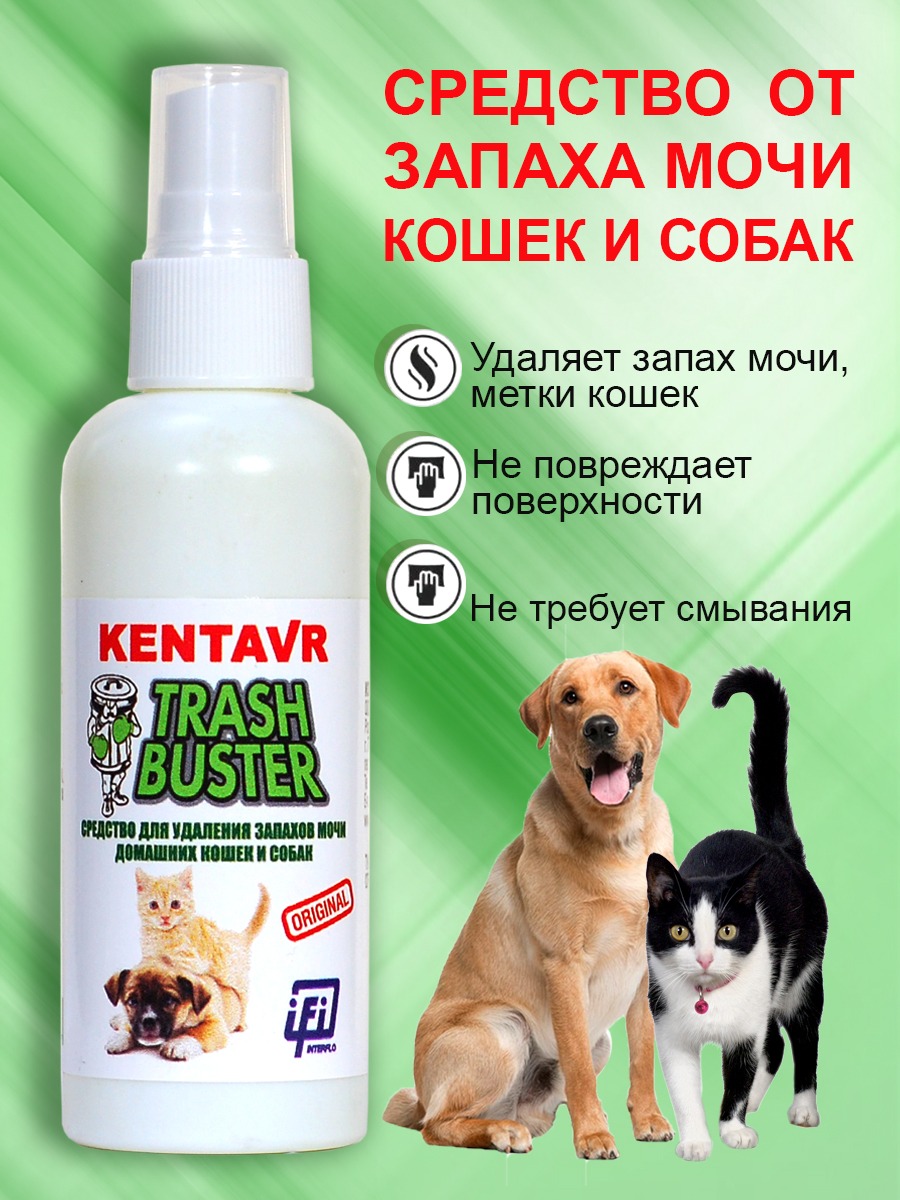 KENTAVR BUSTER - Нейтрализатор запаха животных (кошек, собак, кроликов). Без Хлора! Trash Buster не маскирует запах, как другие средства, а разлагает саму молекулярную составляющую запах. Средство содержит дезинфицирующие компоненты. Можно обрабатывать ковровые и текстильные покрытия. Безопасно для животных. Ликвидатор запаха мочи и меток. Расщепляет биологические ферменты животных, такие как: • Моча • Слюна • Метки • Другие биологические отложения животных. Антигадин для кошек и собак. 100мл